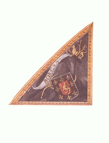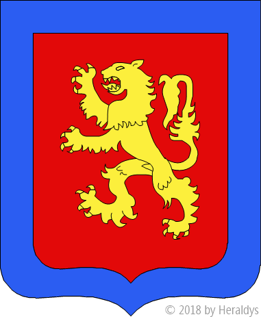 de gueules au lion d'or; à la bordure cousue d'azur chargée de huit fleurs de lys d'or