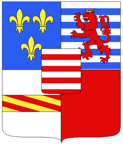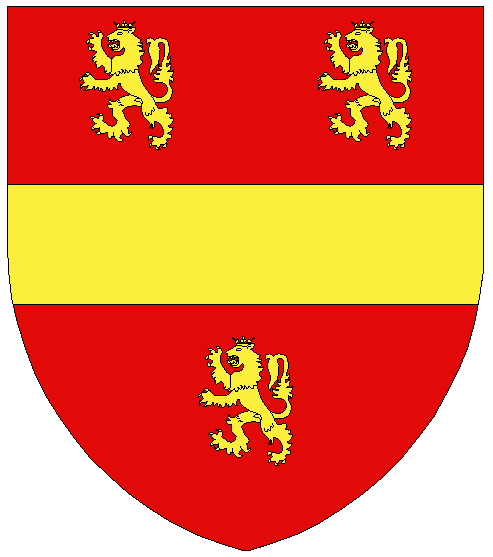 "De gueules, à la fasce d'or acompagnée de trois lionceaux couronnés du même, 2 en chef, 1 en pointe"