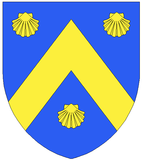 "D'azur, au chevron d'or, accompagné de trois coquilles du même."