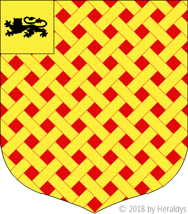 de gueules, fretté d'or, au canton d'or [chargé] d'un léopard de sable.