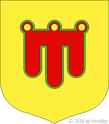 d'or, au gonfanon de gueules, frangé de sinople.