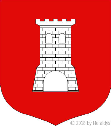 de gueules, à la tour d'argent, maçonnée de sable.