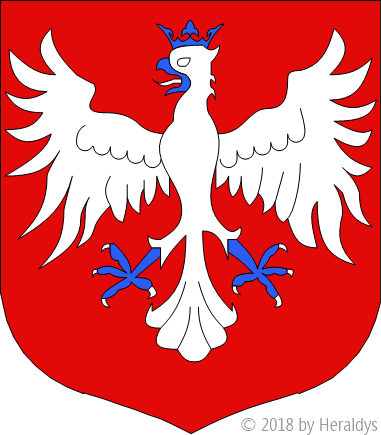 de gueules, à l'aigle d'argent, becquée, membrée et couronnée d'azur.