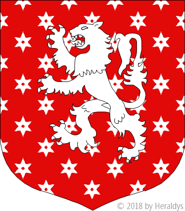 de gueules, semé de molettes d'argent, au lion [du même.] d'argent