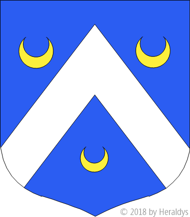 d'azur, au chevron d'argent, accompagné de trois croissants d'or.