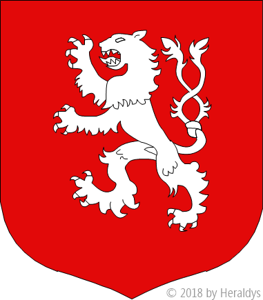 de gueules, au lion d'argent, la queue nouée, fourchée en sautoir.