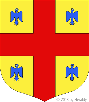 d'or, à la croix de gueules, cantonnée de quatre alérions d'azur.