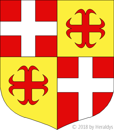 écartelé, aux 1 et 4 [de la religion] de gueules à une croix d'argent, aux 2 et 3 d'or, à la croix ancrée de gueules, qui est d'Aubusson.