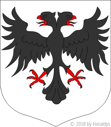 D'argent, à l'aigle éployée de sable, becquée et membrée de gueules