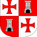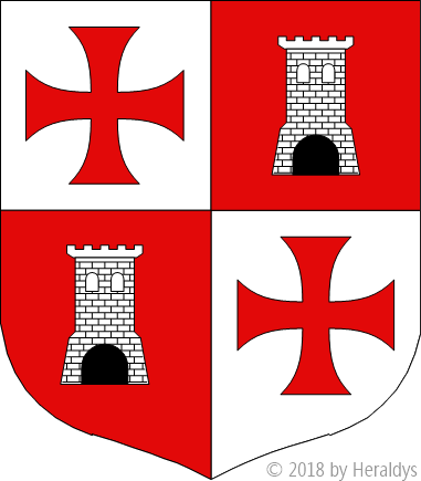 [Alias : écartelé aux 1 et 4 [du Temple]d'argent à une croix patée alaisée de gueules, aux 2 et 3 de gueules, à une tour de deux étages d'argent, ouverte de sable, maçonnée de sable]