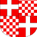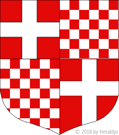 [Alias : écartelé aux 1 et 4 de gueule à une croix d'argent et aux 2 et 3 échiqueté d'argent et de gueules]