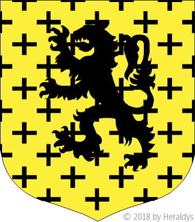d'or, semé de croisettes de sable, au lion [du même.] de sable
