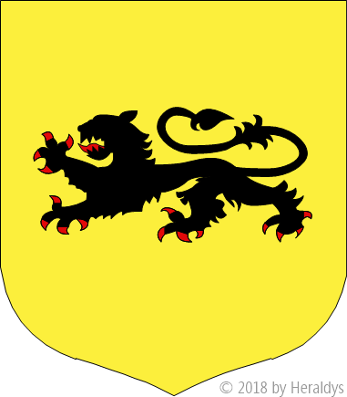 d'or, au lion léopardé de sable, armé et lampassé de gueules.