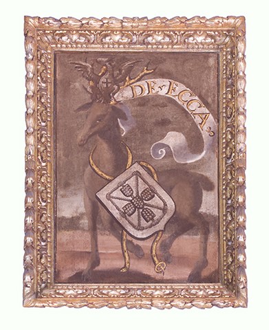 d'argent à cinq écusson ancien d'azur posés en croix et apointé au centre, chacun chargé de douze besants du champ posés 3, 3, 3, 3; les écussons surchargés d'une corde de Saint-François au natuel, posés en croix, en sautoir et en orle