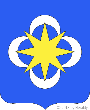 d'azur à un lunel d'argent, une étoile de 8 rais d'or mise en abîme