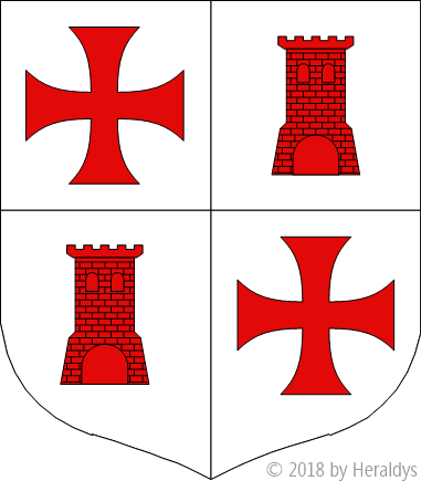 [Alias : écartelé du Temple et d'argent à une tour de gueules maçonnée de sable]