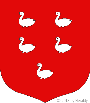 de gueules, à cinq merlettes d'argent, posées en orle.