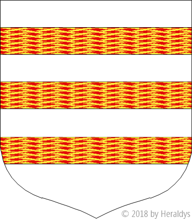d'argent, à trois fasces de gueules, frettées d'or