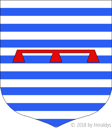 burelé d'argent et d'azur de seize pièces, au lambel de gueules à trois pendants.