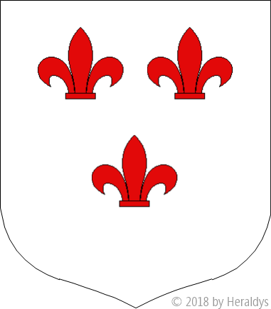 d'argent, à trois fleurs de lis de gueules au pied nourri