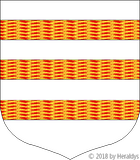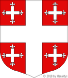 La série des écussons commence à droite de la porte d'entrée par les cinq placés sur la frise auprès des fenêtres. Elle continue ensuite le tour de la salle, et a quatorze écussons sur chacune des trois autres frises; puis elle couvre le plafond d'une double rangée, composée de quarante écussons, ce qui fait en tout quatre-vingt-sept écussons. Les huit armoiries de la rosace du milieu ne font point partie de la série. Ce sont les armes des principaux chefs, répétées à titre d'ornement comme ceux du plafond de la grande salle.