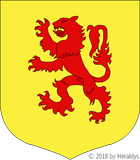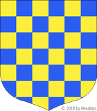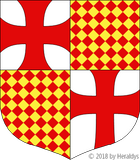 La série des écussons commence à droite de la porte d'entrée par les cinq placés sur la frise auprès des fenêtres. Elle continue ensuite le tour de la salle, et a quatorze écussons sur chacune des trois autres frises; puis elle couvre le plafond d'une double rangée, composée de quarante écussons, ce qui fait en tout quatre-vingt-sept écussons. Les huit armoiries de la rosace du milieu ne font point partie de la série. Ce sont les armes des principaux chefs, répétées à titre d'ornement comme ceux du plafond de la grande salle.
