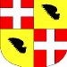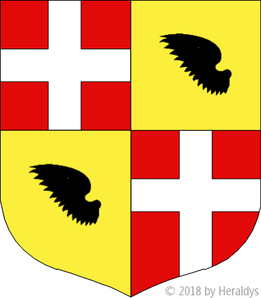 [Alias : écartelé aux 1 et 4 de gueules à une croix d'argent et aux 2 et 3 d'or à un demi-vol de sable]