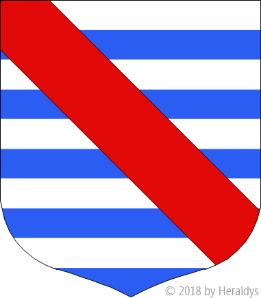 burelé d'argent et d'azur de 10 pièces à la bande de gueules brochant