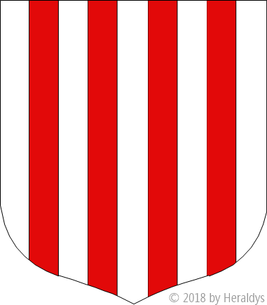 d'argent, à quatre pals de gueules.