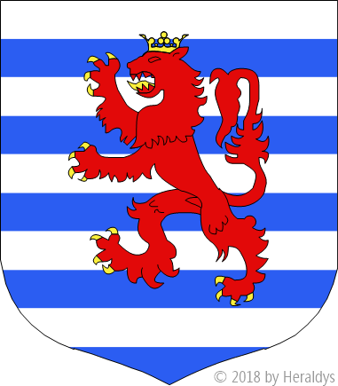 burelé d'argent et d'azur, au lion de gueules, armé, lampassé et couronné d'or.