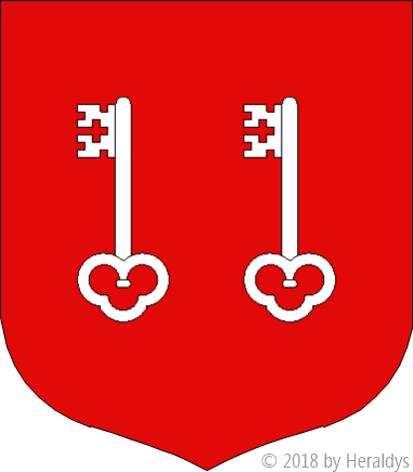 de gueules, à deux clefs d'argent, passées en sautoir.
