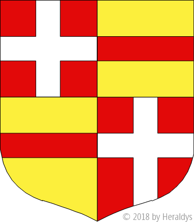 écartelé, aux 1 et 4 [de l'Ordre de Saint-Jean de Jérusalem] de gueules à la croix d'argent, aux 2 et 3 d'or, à la fasce de gueules.