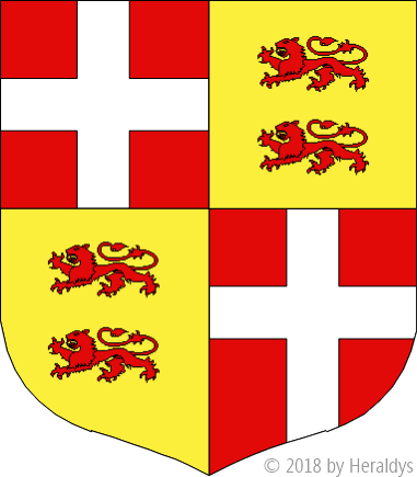 écartelé, aux 1 et 4 [de l'Ordre de Saint-Jean de Jérusalem] de gueules à la croix d'argent, aux 2 et 3 d'or, à deux lions léopardés de gueules, l'un sur l'autre.
