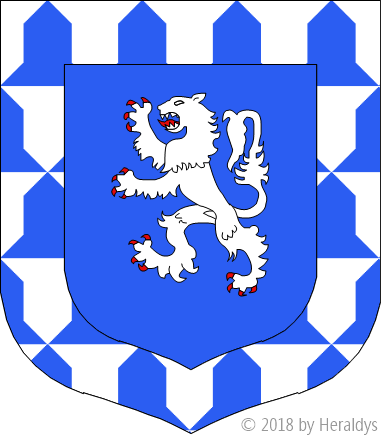 d'azur, au lion d'argent, armé et lampassé de gueules, à la bordure de vair.
