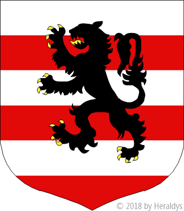 fascé d'argent et de gueules, au lion de sable armé et lampassé d'or.