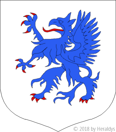 d'argent, au griffon d'azur, armé et [lampassé] langué de gueules.