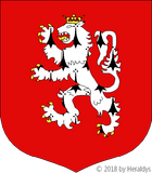 Cette salle qui, à l'origine, ne présentait que 86 blasons, a été complétée entre 1862 et 1863 par 4 blasons, portant ainsi le nombre à 90 blasons.