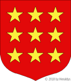 Cette salle qui, à l'origine, ne présentait que 86 blasons, a été complétée entre 1862 et 1863 par 4 blasons, portant ainsi le nombre à 90 blasons.